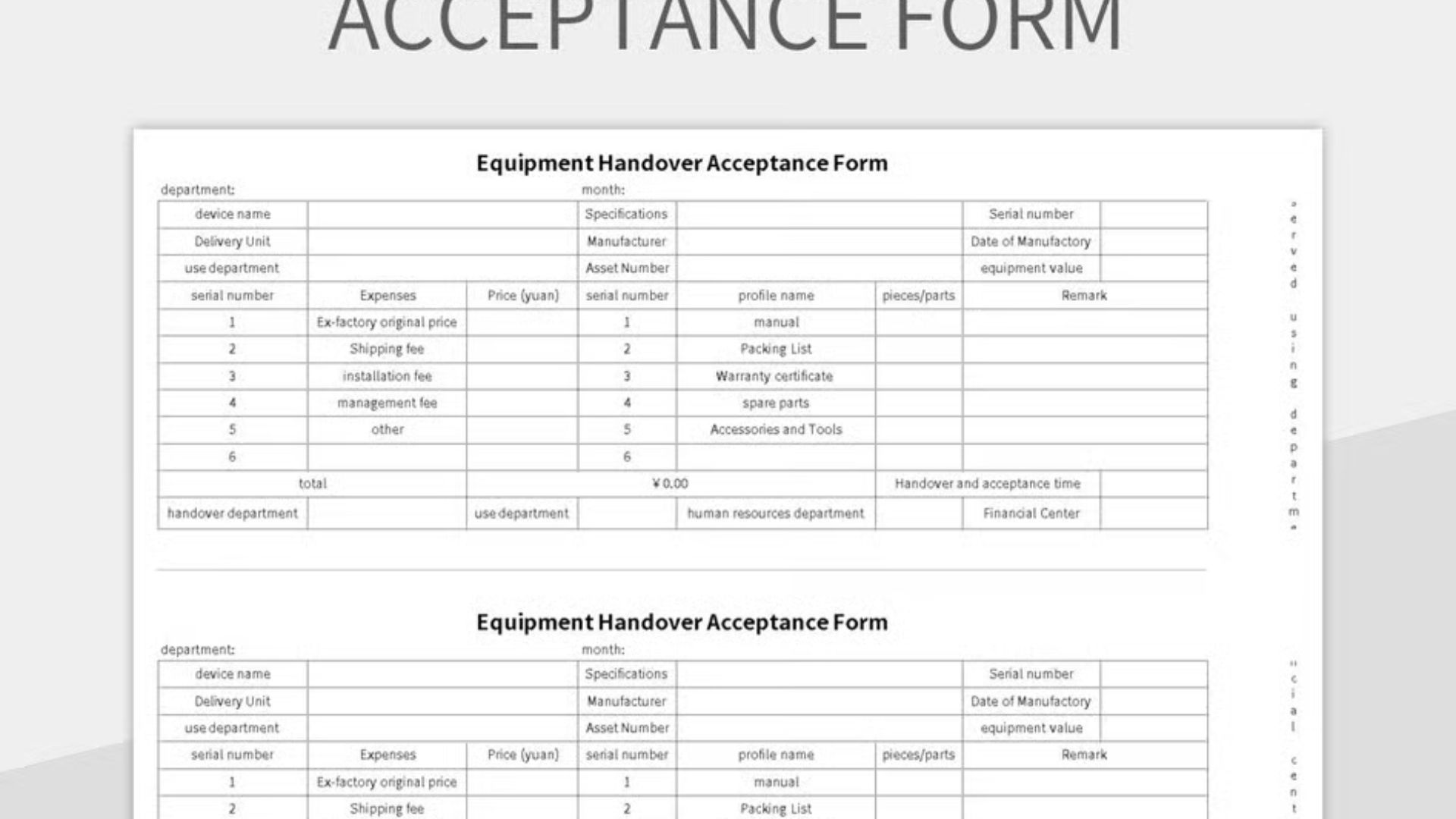 Biểu mẫu ghi lại các công việc bảo dưỡng và phụ tùng đã thay thế như vòng bi, phớt, lọc dầu… giúp kiểm soát chi phí vật tư và theo dõi tuổi thọ thiết bị.