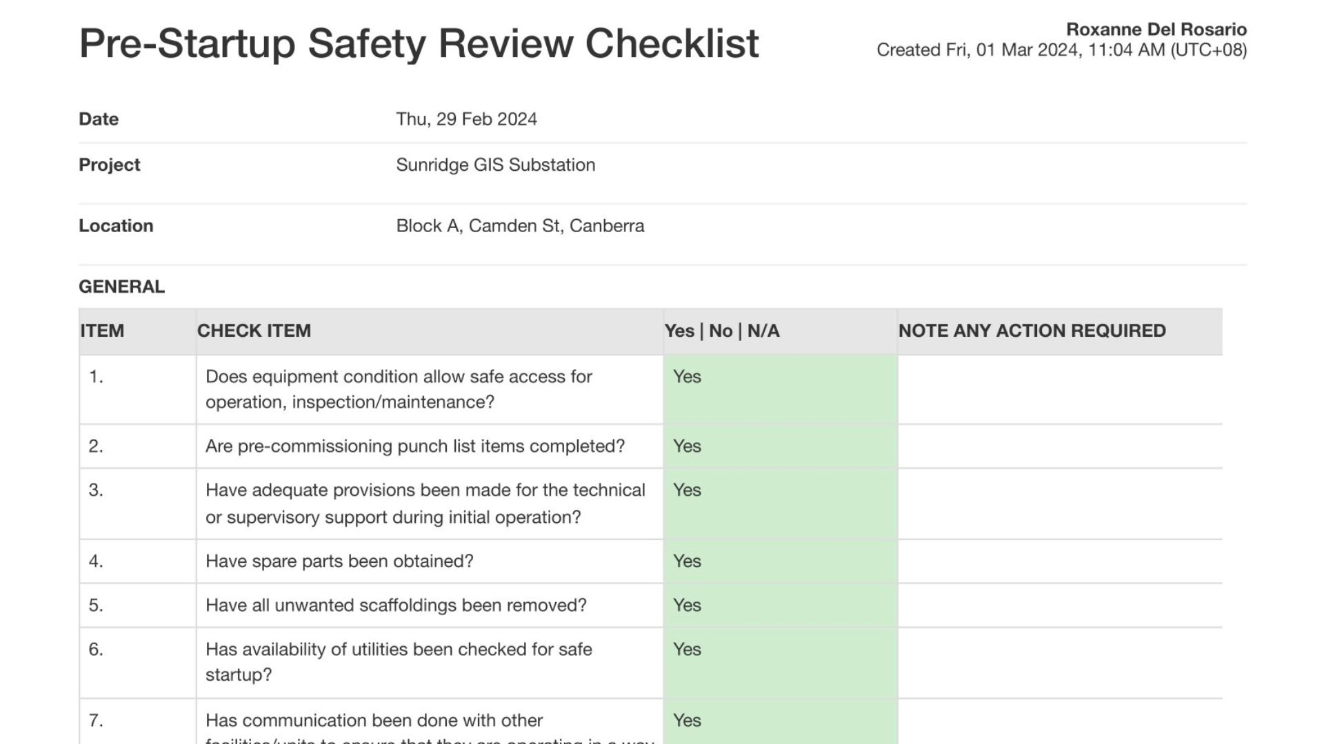 Mẫu check an toàn và nghiệm thu trước khi khởi động máy