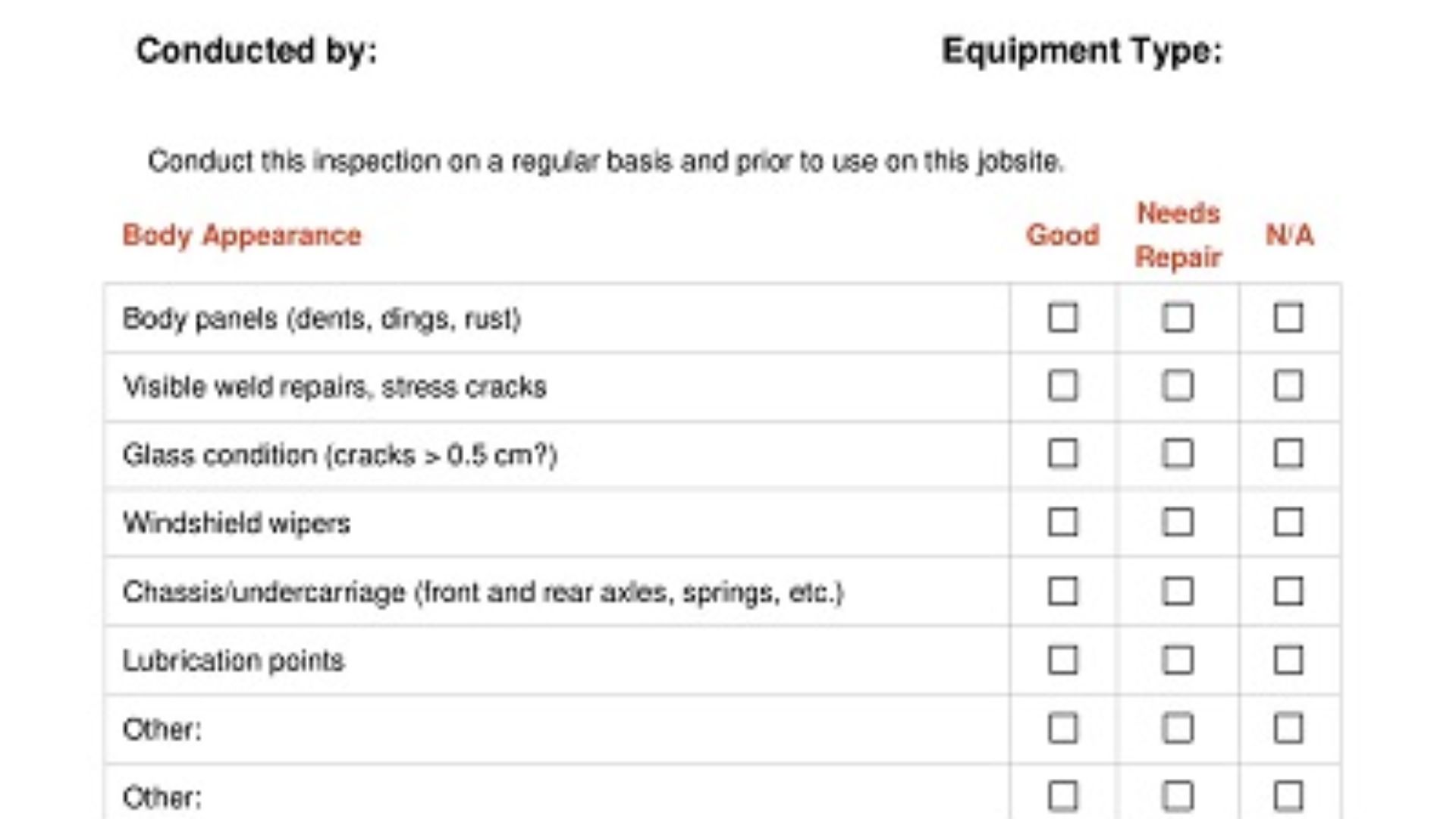 Mẫu checklist kiểm tra thiết bị