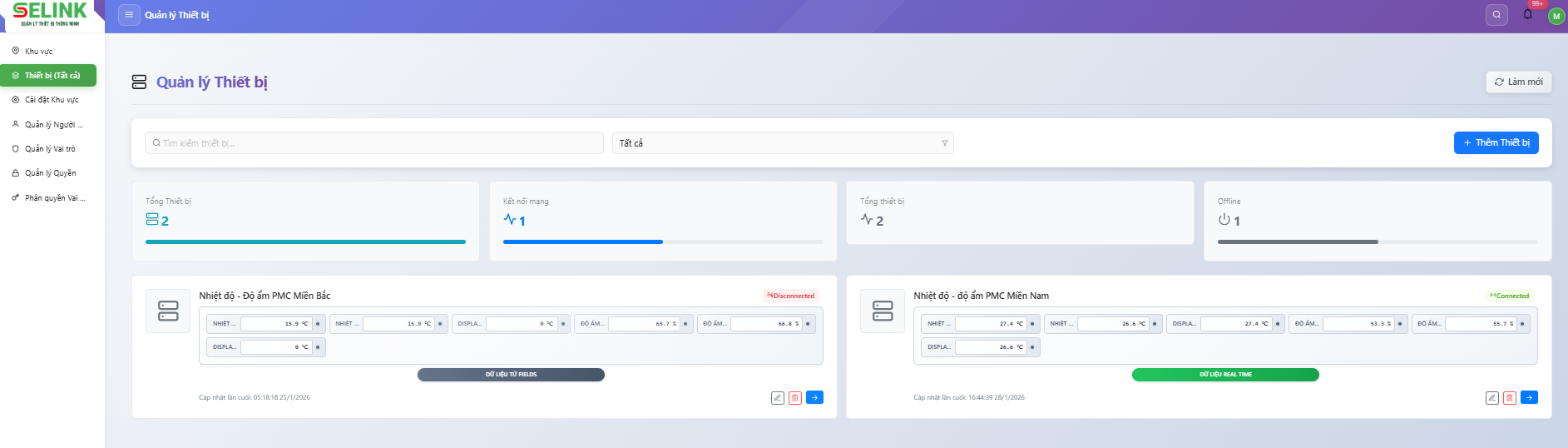 • Giám sát thời gian thực 24/7: Hiển thị liên tục số liệu nhiệt độ, độ ẩm từ tất cả các cảm biến trên giao diện web hoặc ứng dụng di động.